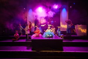 The hall is ready, the guests are asked to take their seats – only the hosts are still missing. They are stuck in enchanted rooms. The ladies and gentlemen are trapped in a party trap, have lost their magical powers as magicians, call for help as princesses, drift through the sea as mermaids or fight as activists to save the world. Once everyone has been freed from their rooms, the ball can begin. Who is ready to dance? THE BALL is both an ending and a new beginning: over the last four years and productions, the artists of the inclusive Hamburg ensemble Meine Damen und Herren have gradually moved away from their previous working methods as an ensemble with changing guest directors and set out on the path to becoming a collective. They are experimentally exploring the possibilities and opportunities of equal working practices (also) in structural power imbalances, developing remarkable artistic tools and new aesthetics in the process.