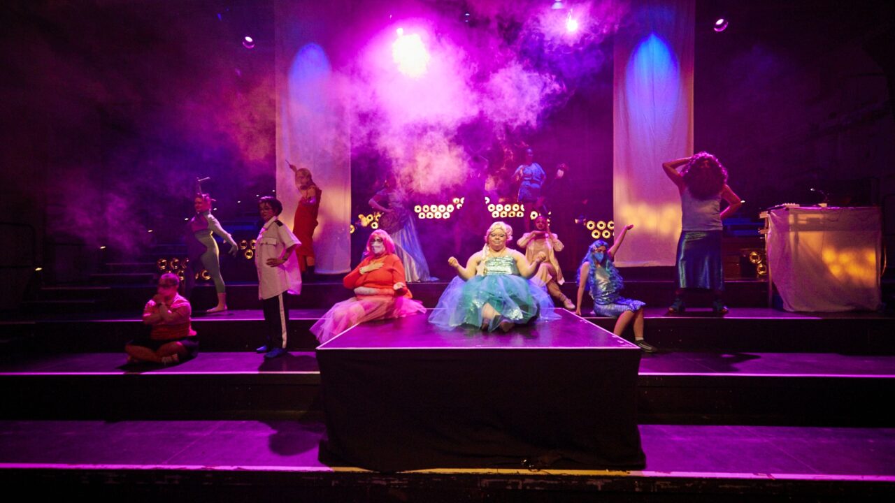 The hall is ready, the guests are asked to take their seats – only the hosts are still missing. They are stuck in enchanted rooms. The ladies and gentlemen are trapped in a party trap, have lost their magical powers as magicians, call for help as princesses, drift through the sea as mermaids or fight as activists to save the world. Once everyone has been freed from their rooms, the ball can begin. Who is ready to dance? THE BALL is both an ending and a new beginning: over the last four years and productions, the artists of the inclusive Hamburg ensemble Meine Damen und Herren have gradually moved away from their previous working methods as an ensemble with changing guest directors and set out on the path to becoming a collective. They are experimentally exploring the possibilities and opportunities of equal working practices (also) in structural power imbalances, developing remarkable artistic tools and new aesthetics in the process.